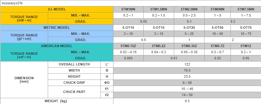 Mismas características que TM diseñado para medir bajo torque. Funcionamiento bidireccional.