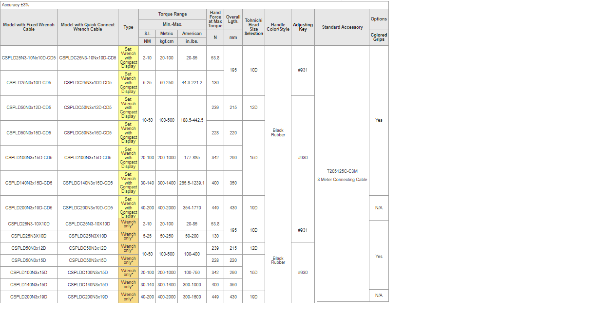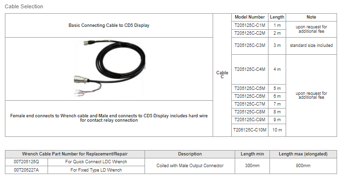 - Requiere pantalla compacta CD5 para completar el sistema; La llave CSPLD o CSPLDC y el CD5 se calibran juntos en el momento del pedido. Se requiere calibración si se cambia la llave o se cambia el ajuste de torsión.