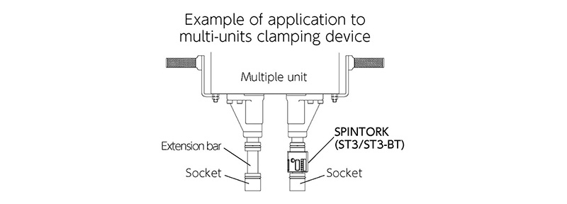 • Permite a los operadores realizar comprobaciones de par (inspecciones de rutina) de equipos de apriete de husillos múltiples mientras continúan apretando al mismo tiempo. La conexión de la barra de extensión opcional, que tiene la misma longitud que la ST3, a husillos no instalados con Spintork® facilita la verificación del par sin quitar el aprietatuercas del equipo de apriete de husillos múltiples. Esto reduce los pasos en el proceso de inspección de calidad.