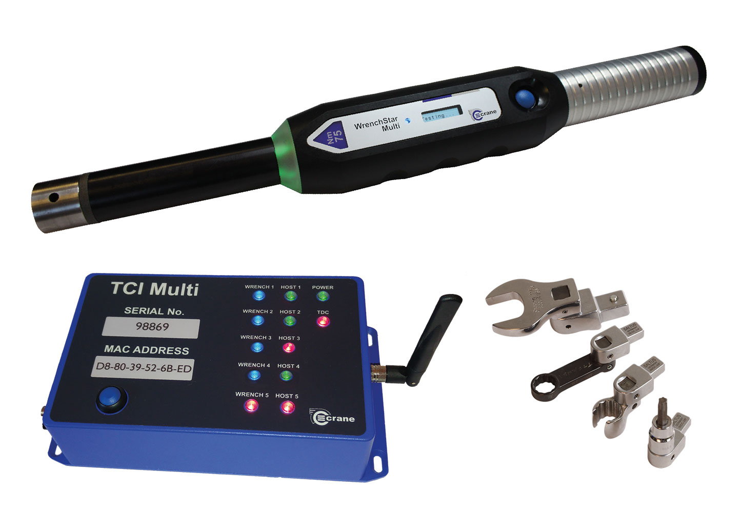 El TCI Multi permite una fácil configuración, administración y diagnóstico a través de navegadores web y los trabajos pueden seleccionarse y enviarse al WrenchStar Multi para ser operados y los resultados de la lectura luego se comunican al TCI Multi y se ven en una PC o página web. La unidad TCI acepta comandos de protocolo abierto a través de Ethernet para seleccionar y enviar los trabajos a WrenchStar Multi.